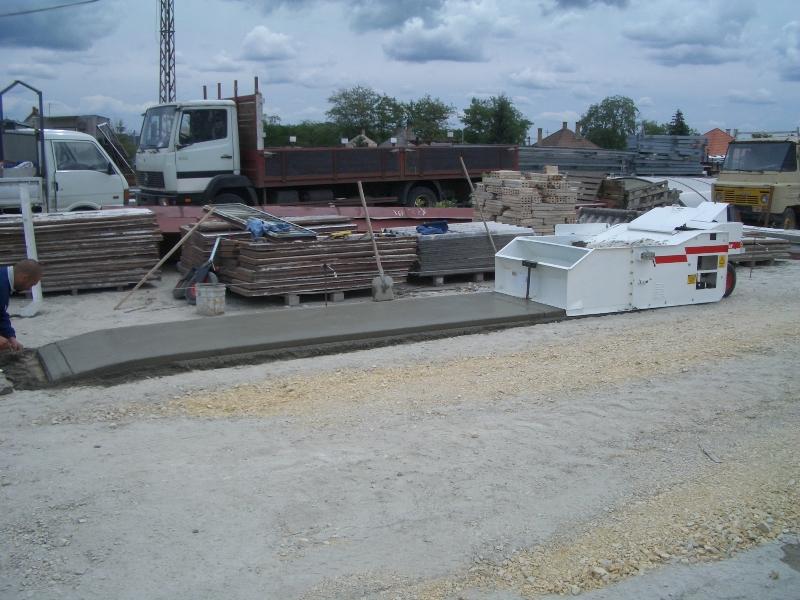 Speciális gépünk -betonfiniser-segítségével egy sávban akár 2 méter szélességben tudunk monolit betonjárdát, kerékpárutat készíteni, kiváltva ezzel a zsaluzással, szegélykövezést igénylő kézi erővel, lényegesen lassabban készülő, széles körűen alkalmazott eddigi technológiákat.