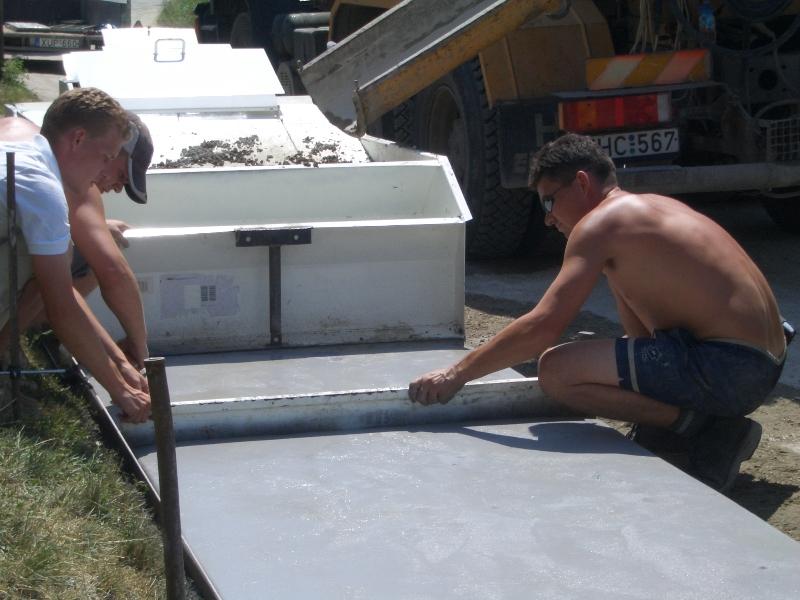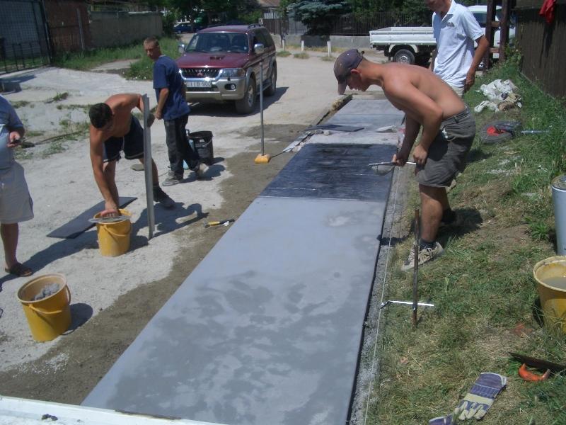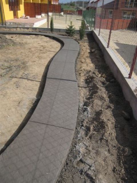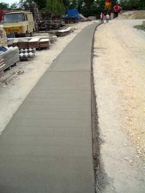 Megfelelő körülmények között akár 400-500 fm/nap monolit járdát, kerékpárutat építünk.