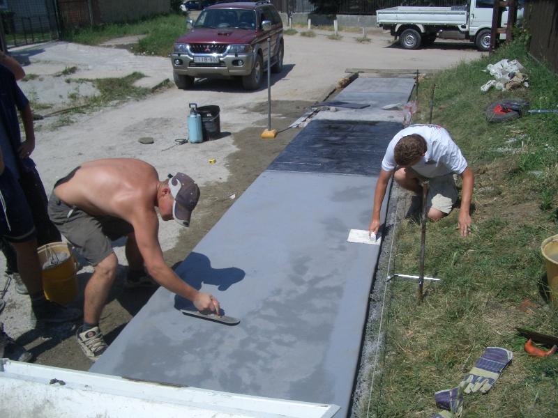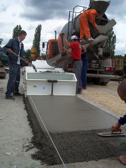 Speciális gépünk -betonfiniser-segítségével egy sávban akár 2 méter szélességben tudunk monolit betonjárdát, kerékpárutat készíteni, kiváltva ezzel a zsaluzással, szegélykövezést igénylő kézi erővel, lényegesen lassabban készülő, széles körűen alkalmazott eddigi technológiákat.