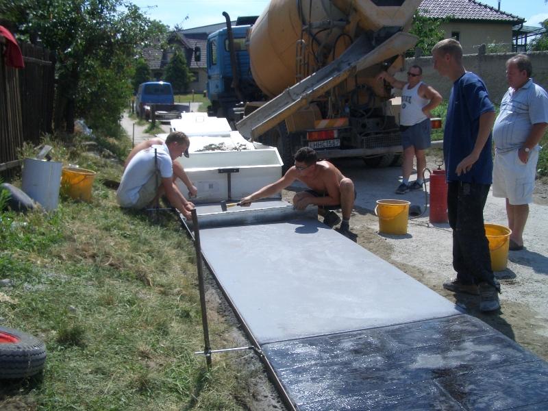 Megfelelő körülmények között akár 400-500 fm/nap monolit járdát, kerékpárutat építünk.